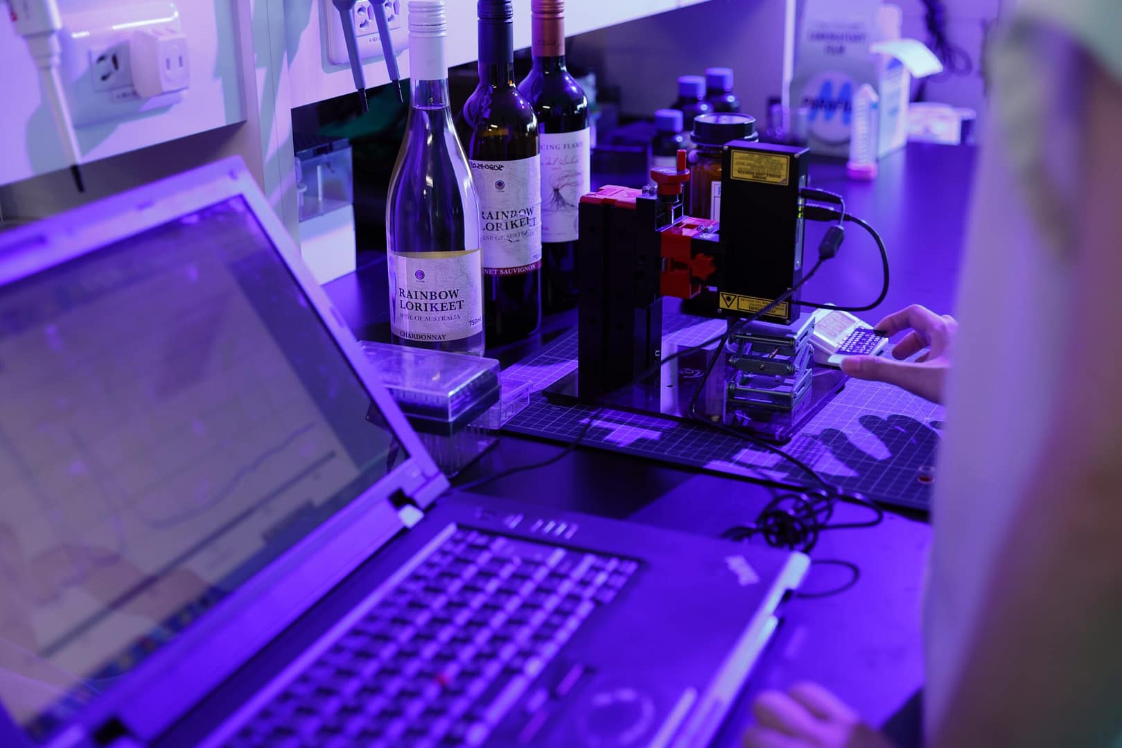 1)Prepare a Raman spectrometer, SERS substrate, and wine holder.